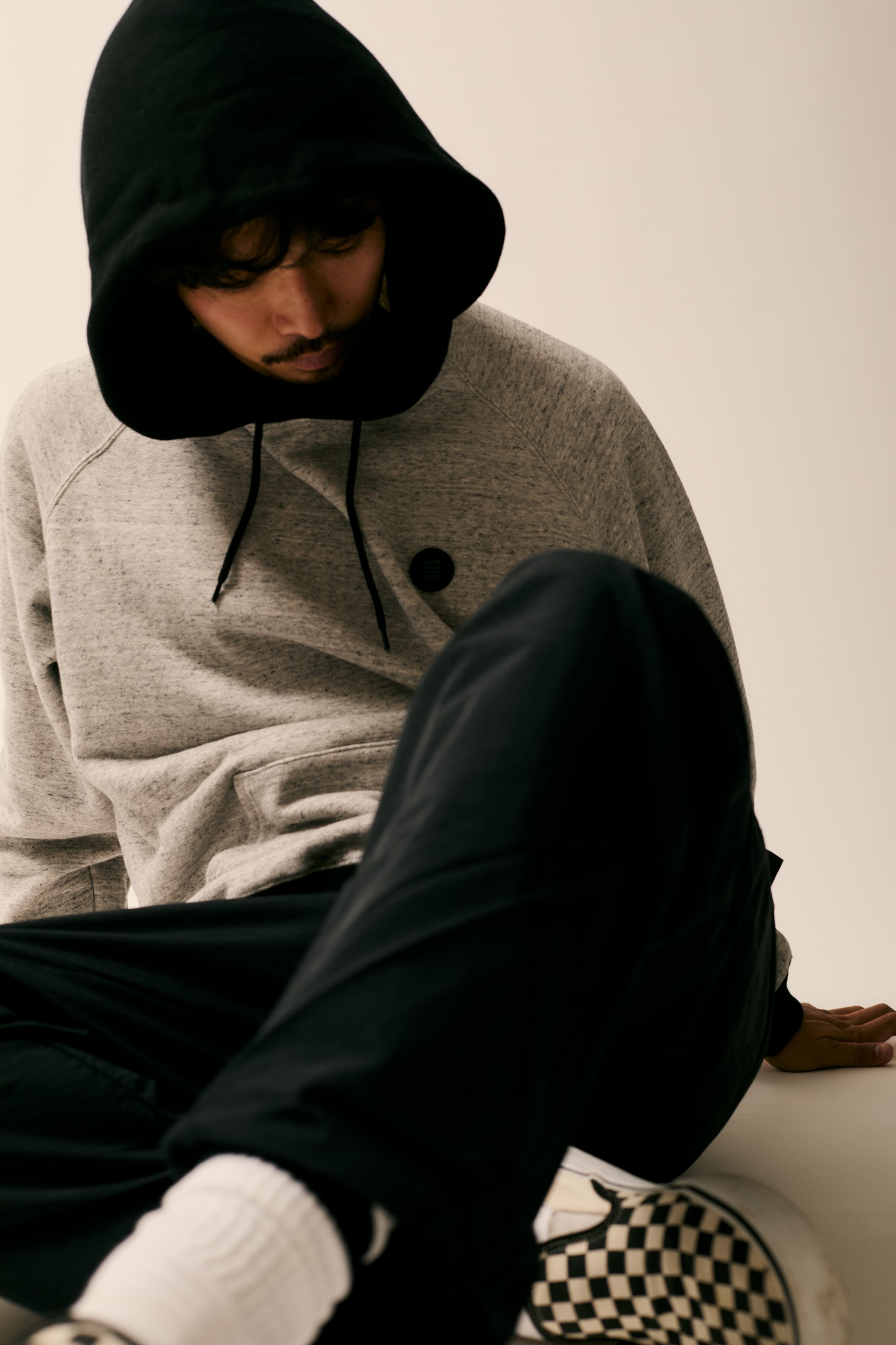 柔らかなコットンを使用した2トーン配色のフーディー。