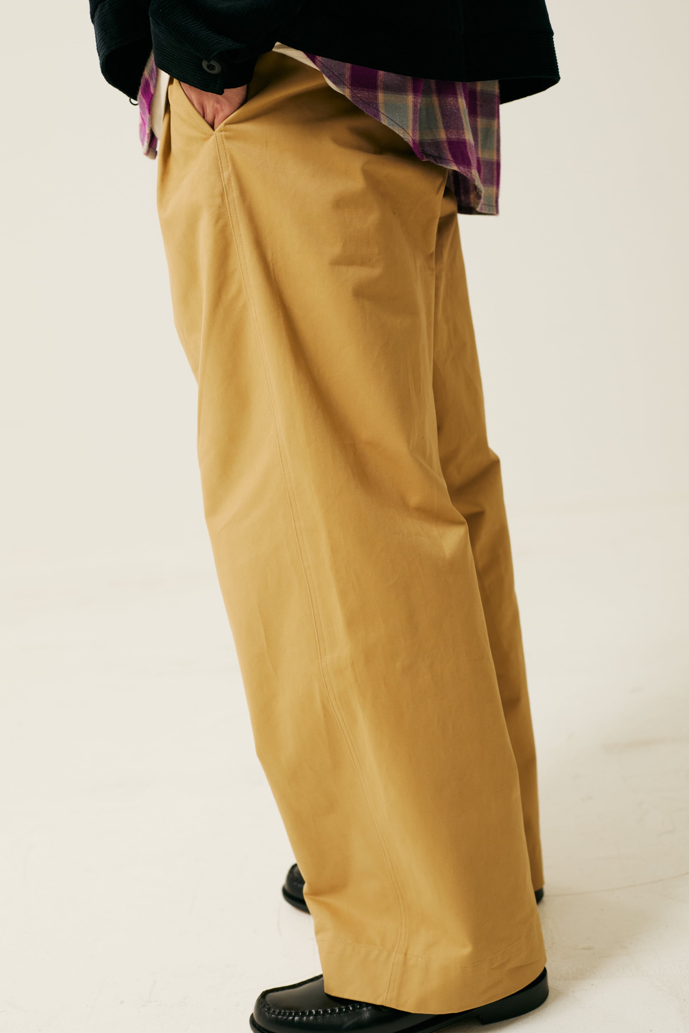 胸にポケット、裾はラウンド仕様、シンプルで程よくゆとりあるシルエット。