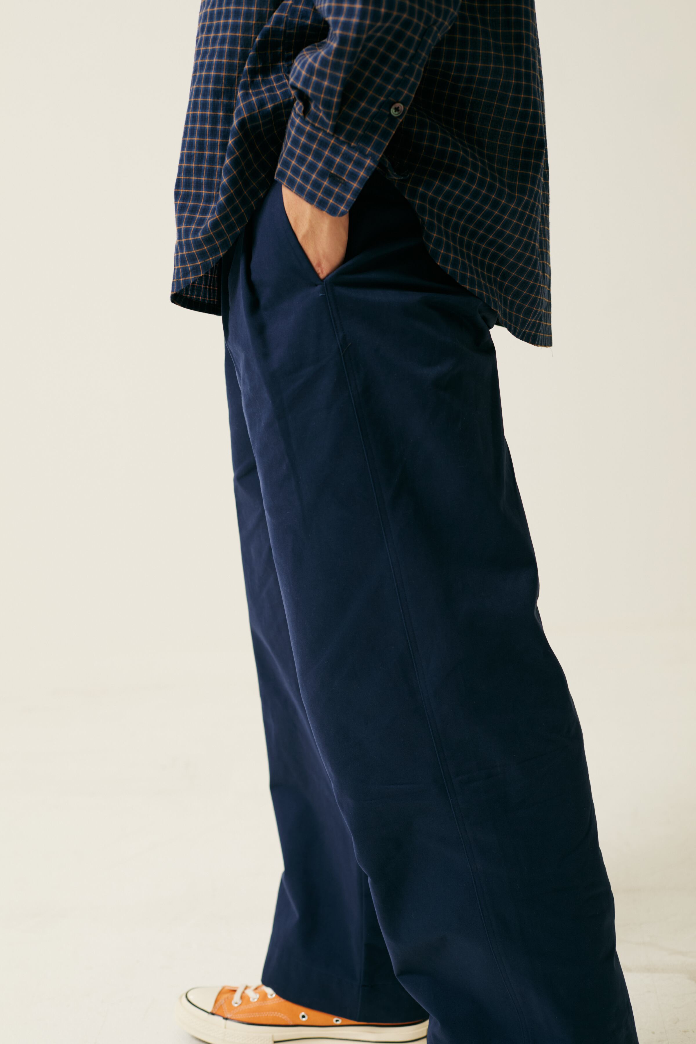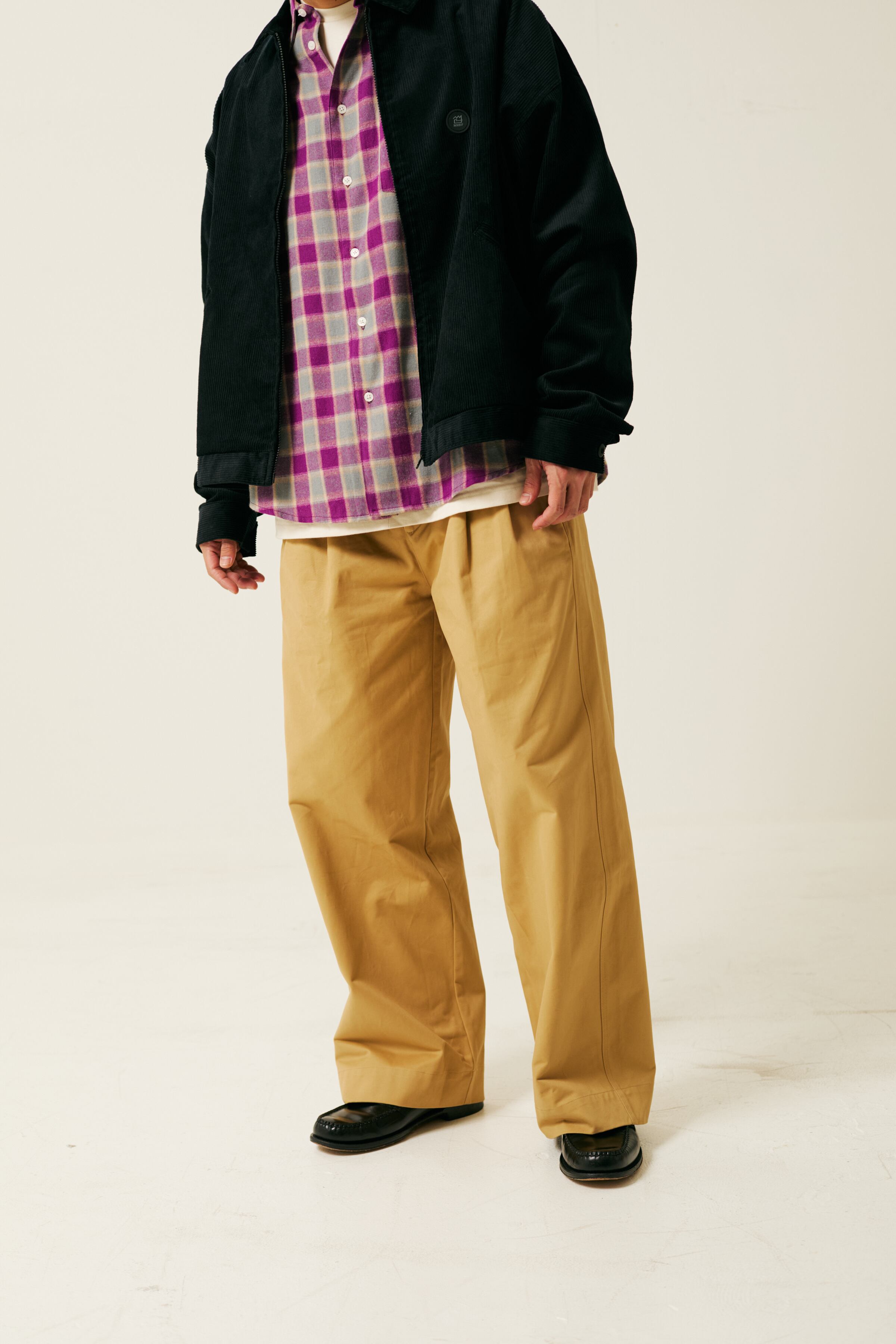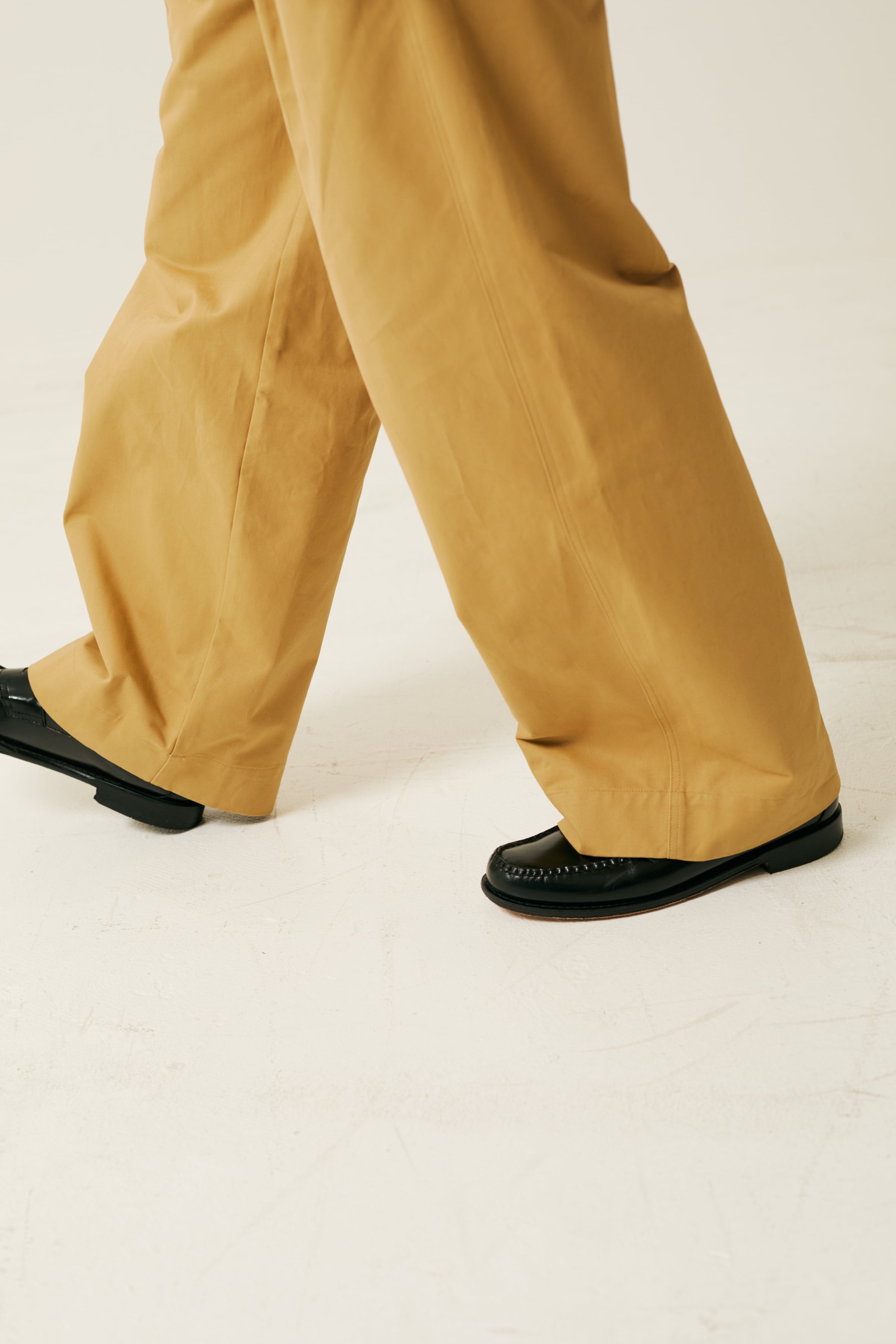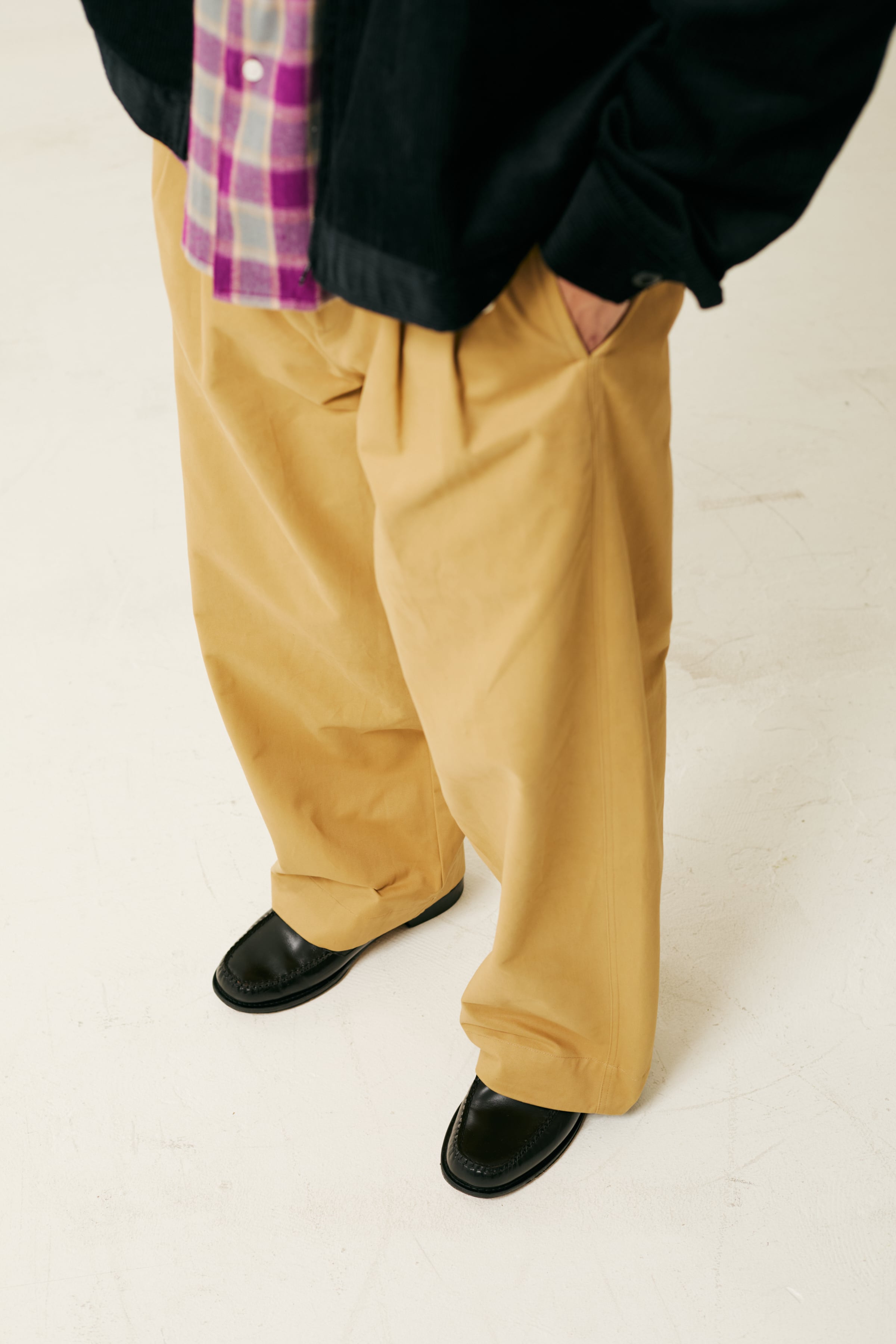 ハリととろみがあるチノ生地を採用した、2タックワイドパンツです。