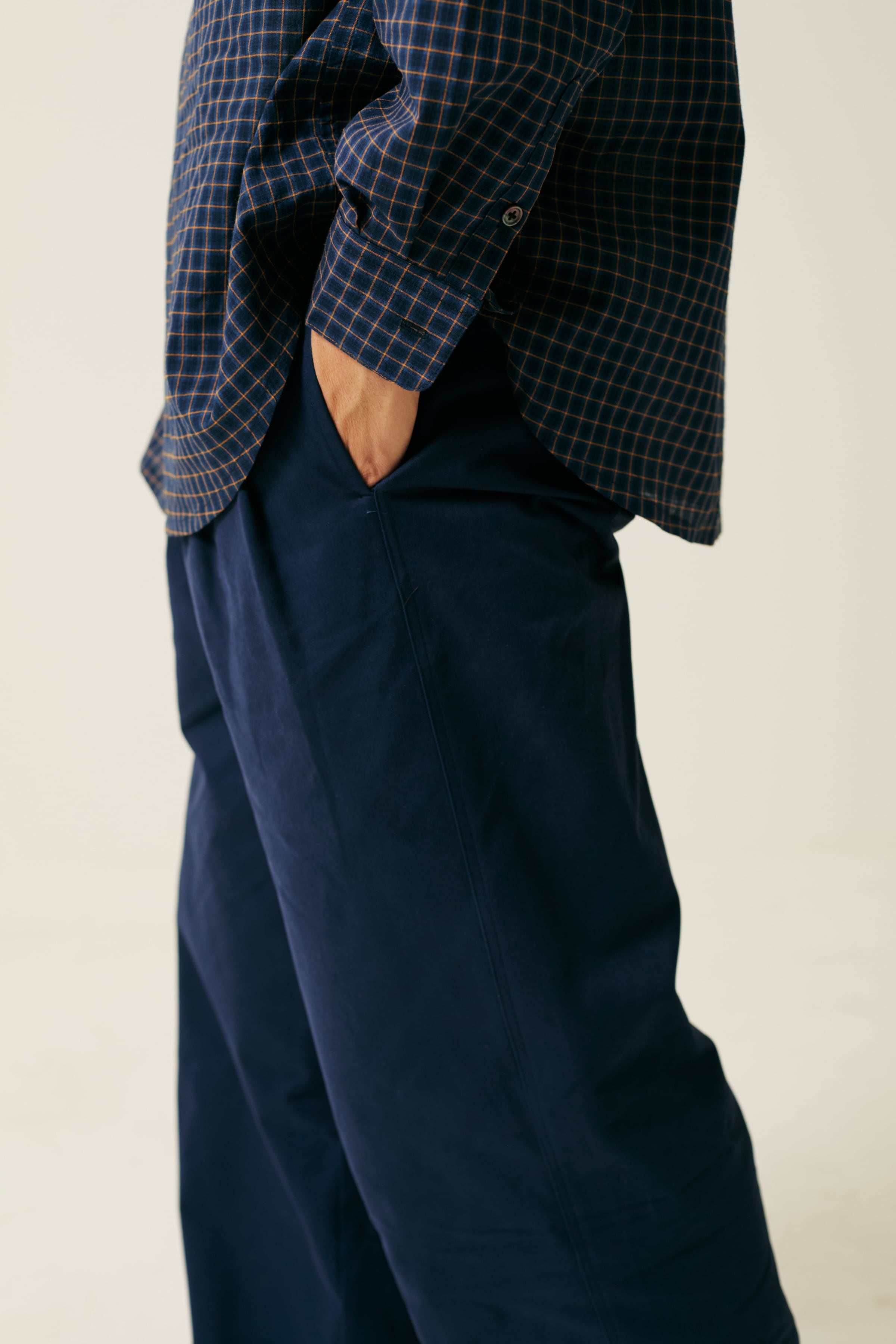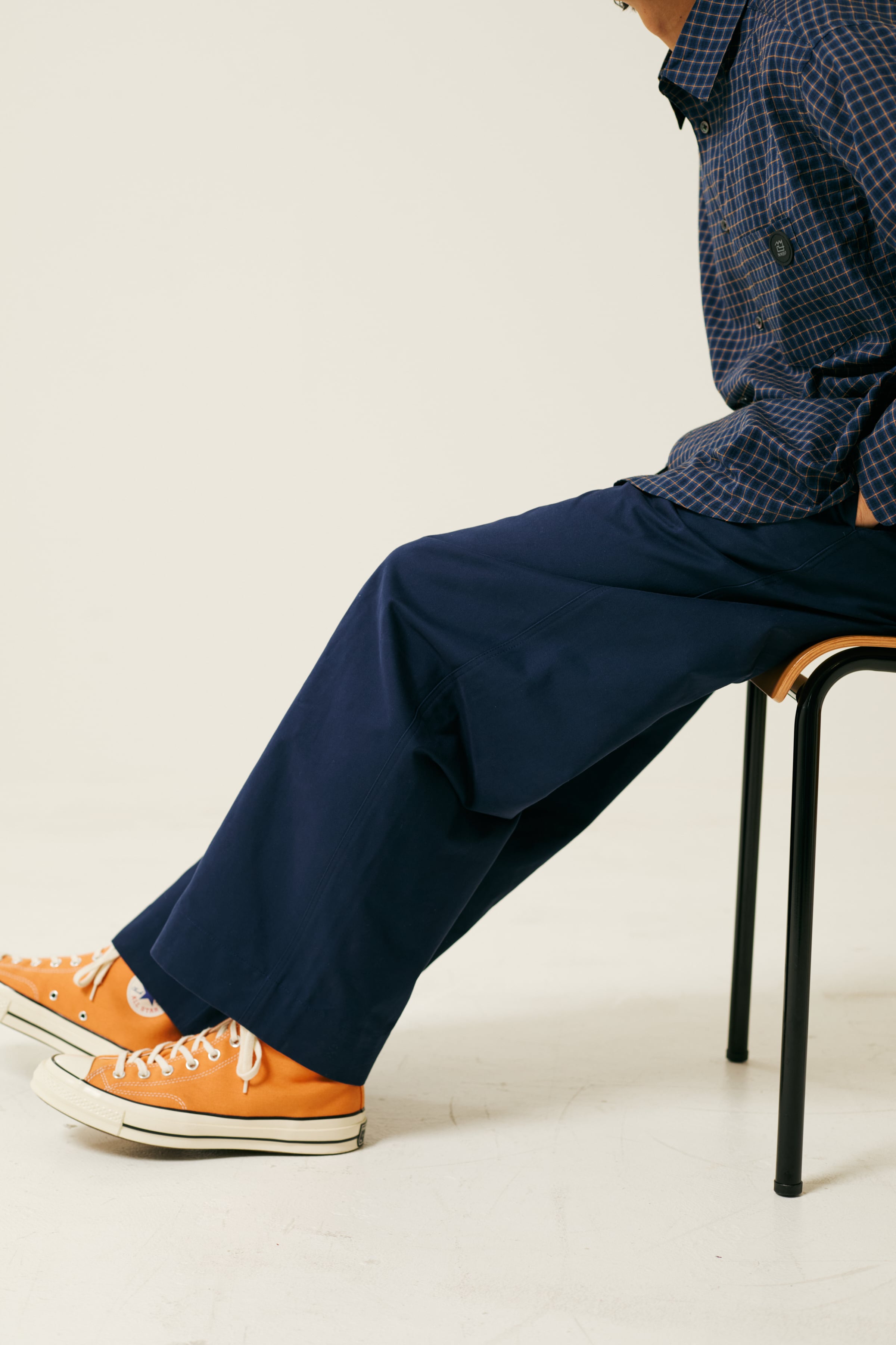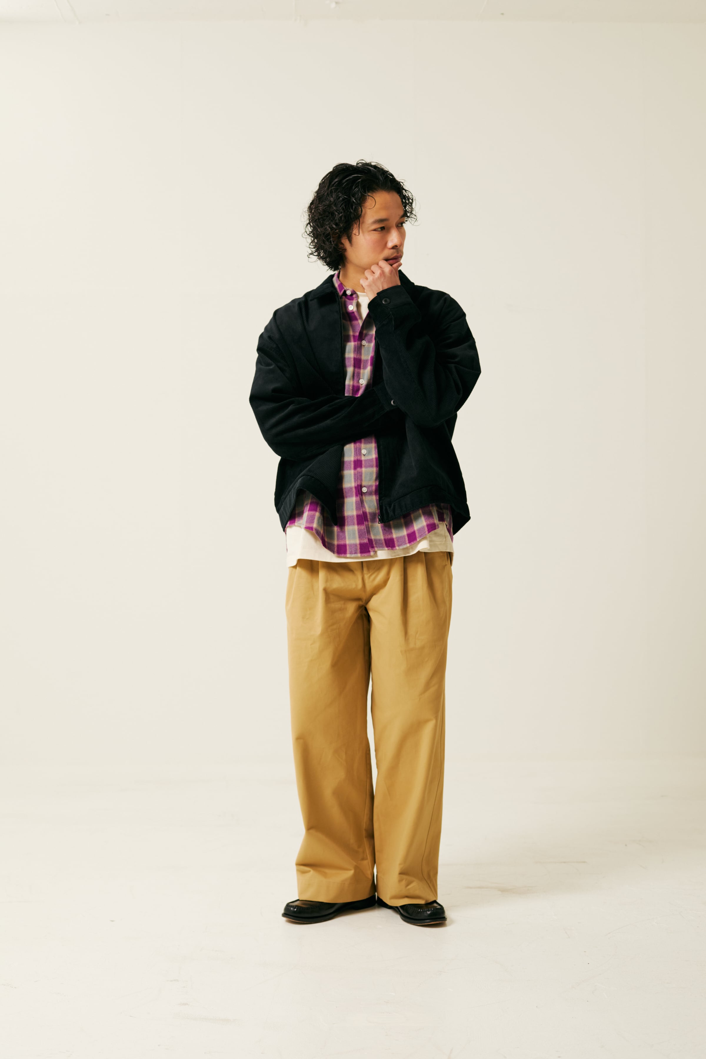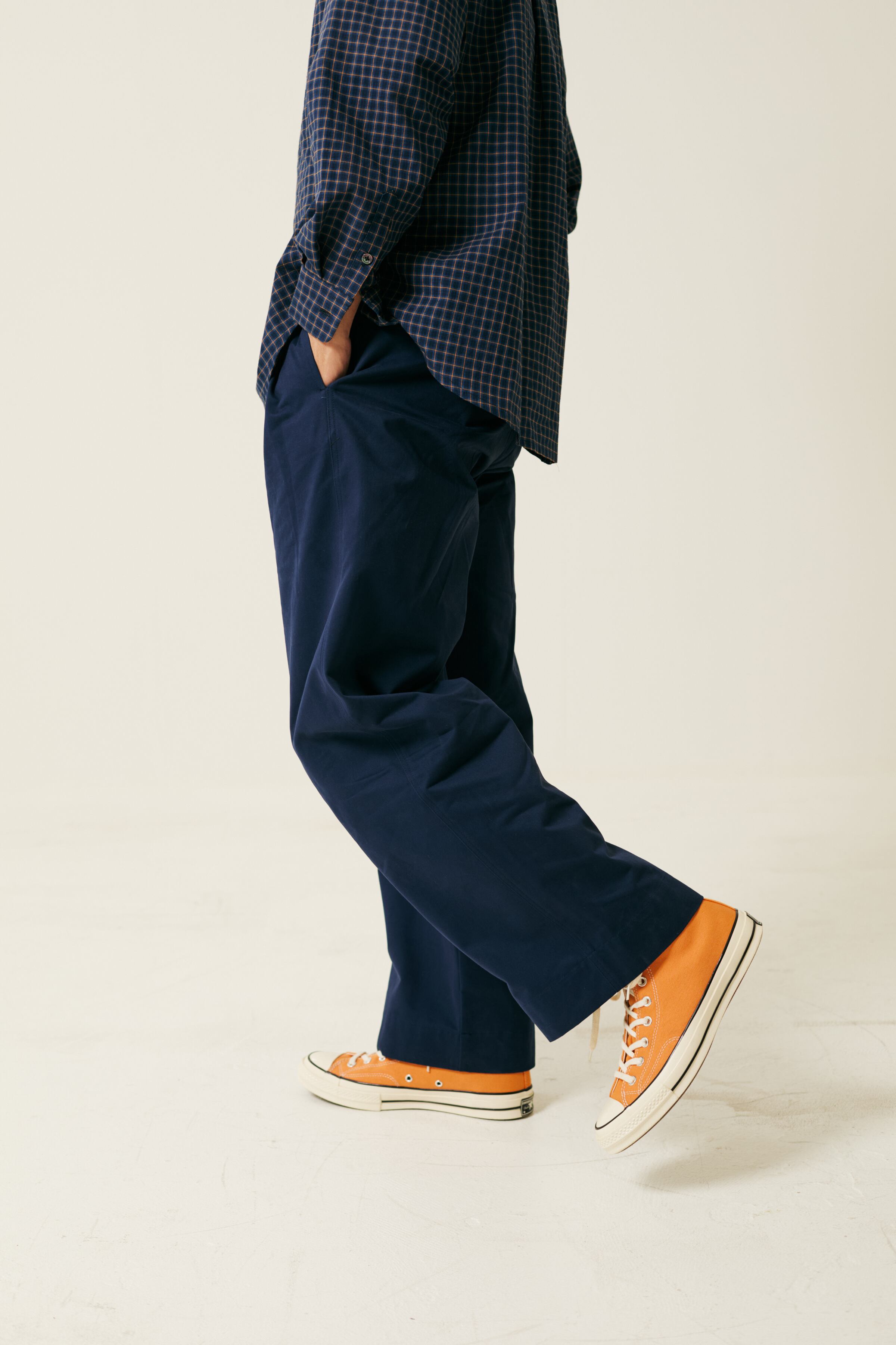 ハリととろみがあるチノ生地を採用した、2タックワイドパンツです。
