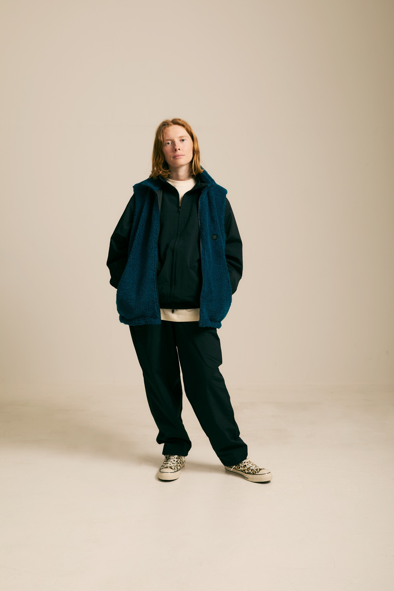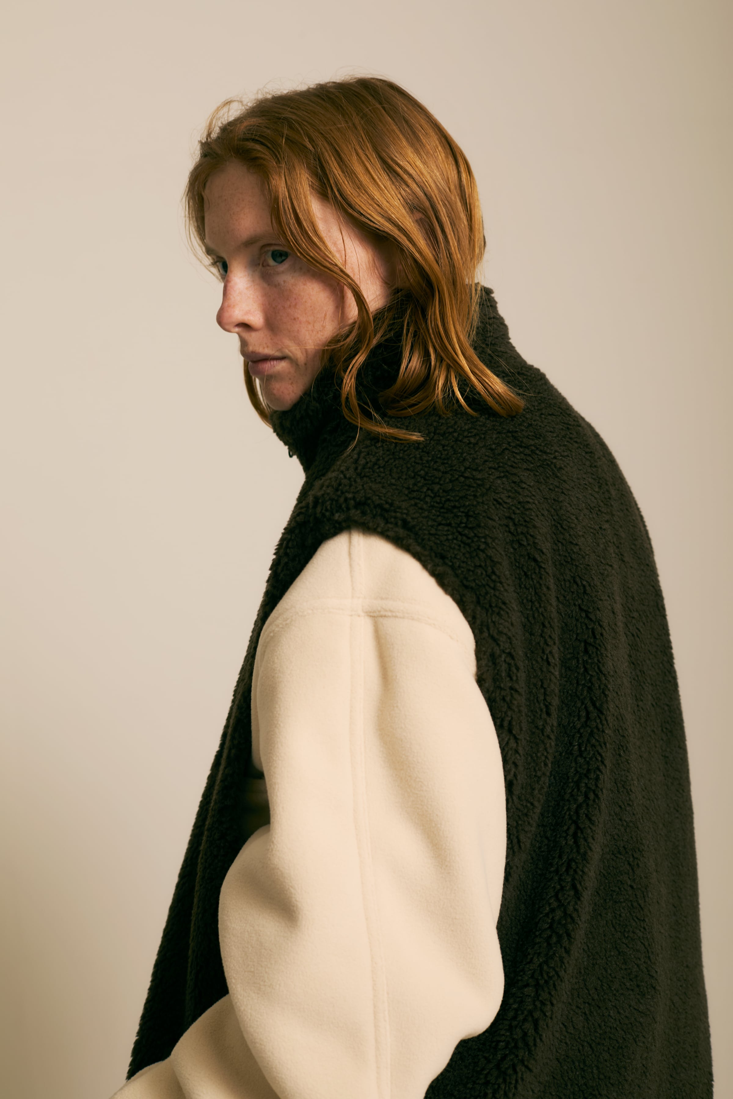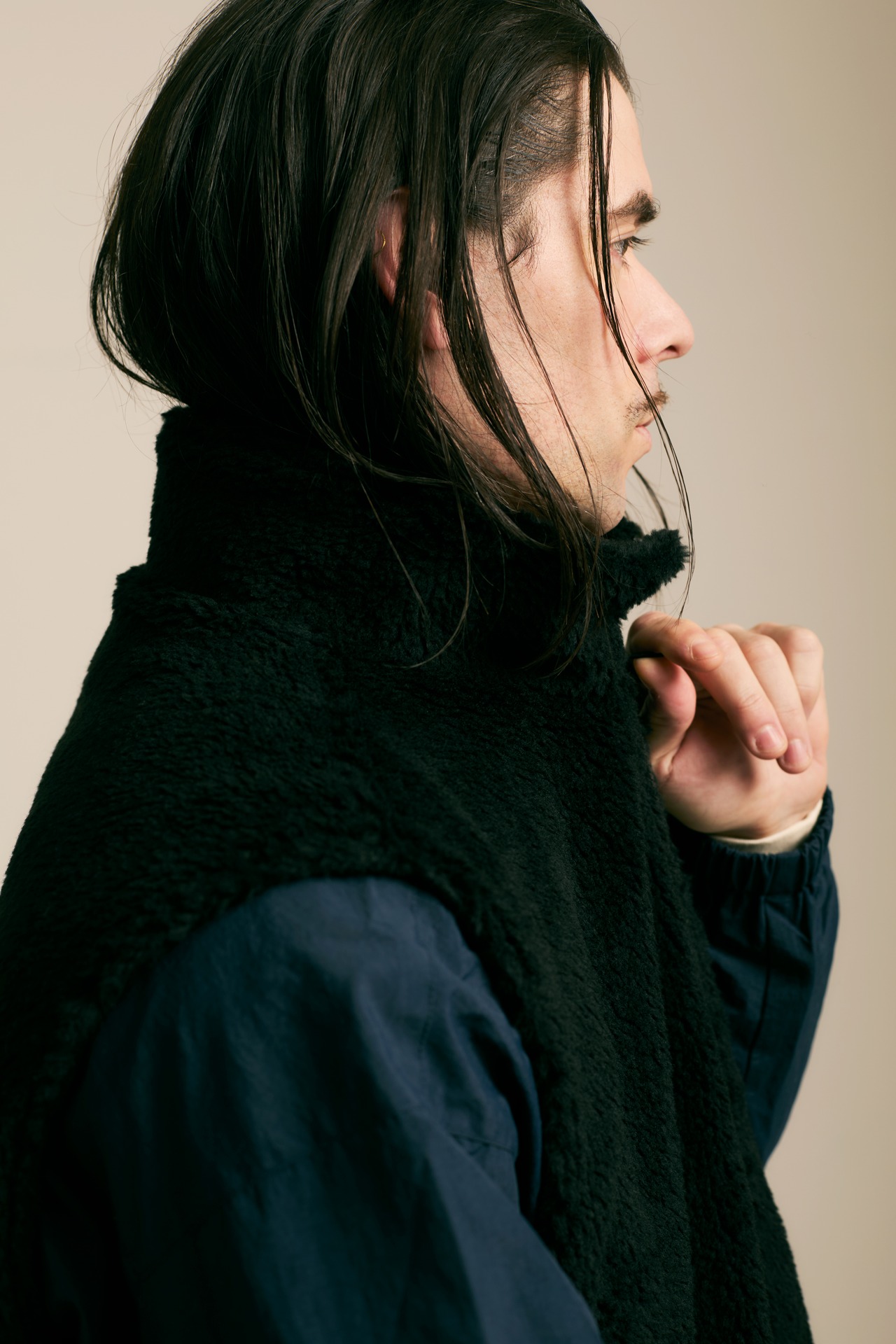 ボアフリースを使用したコーディネートのアクセントになる素材感のベスト。