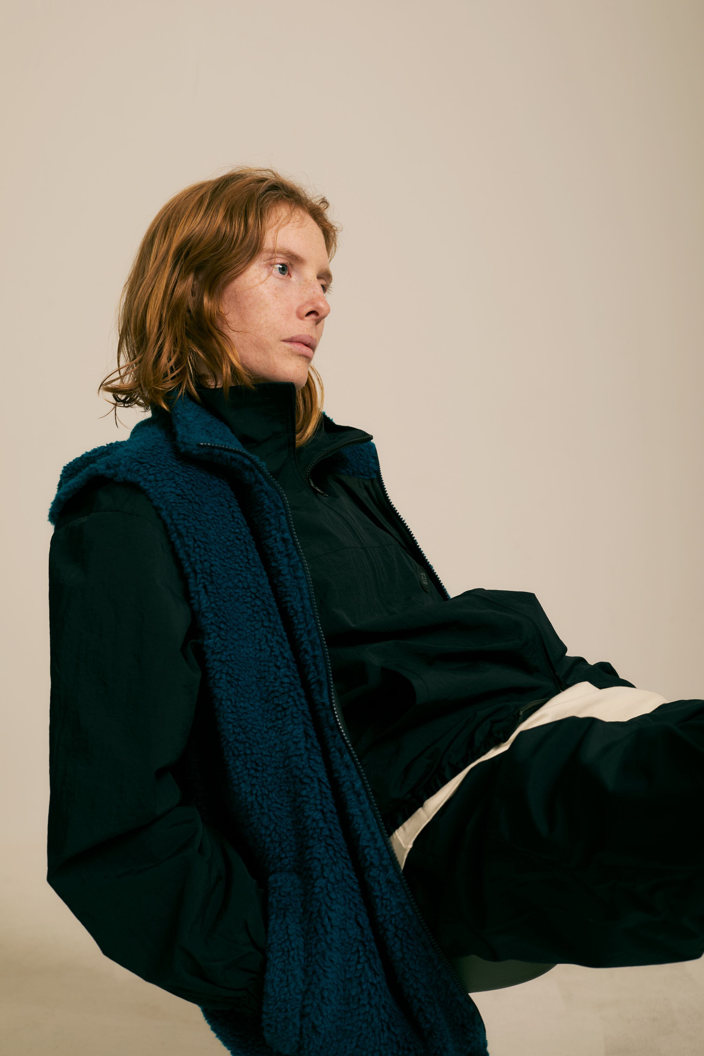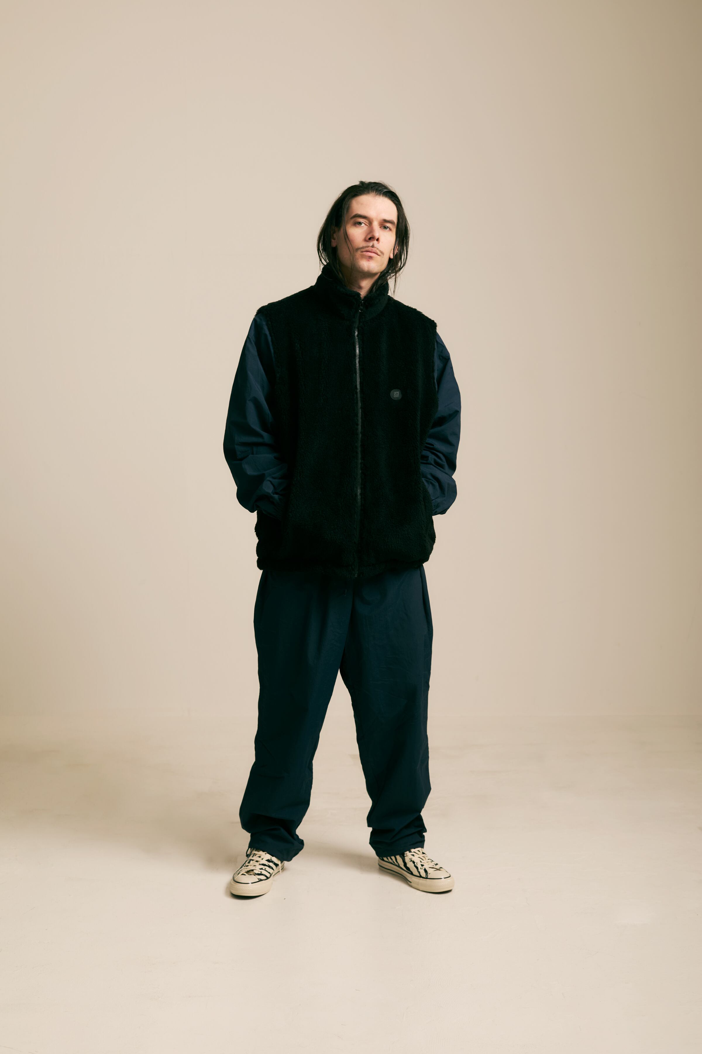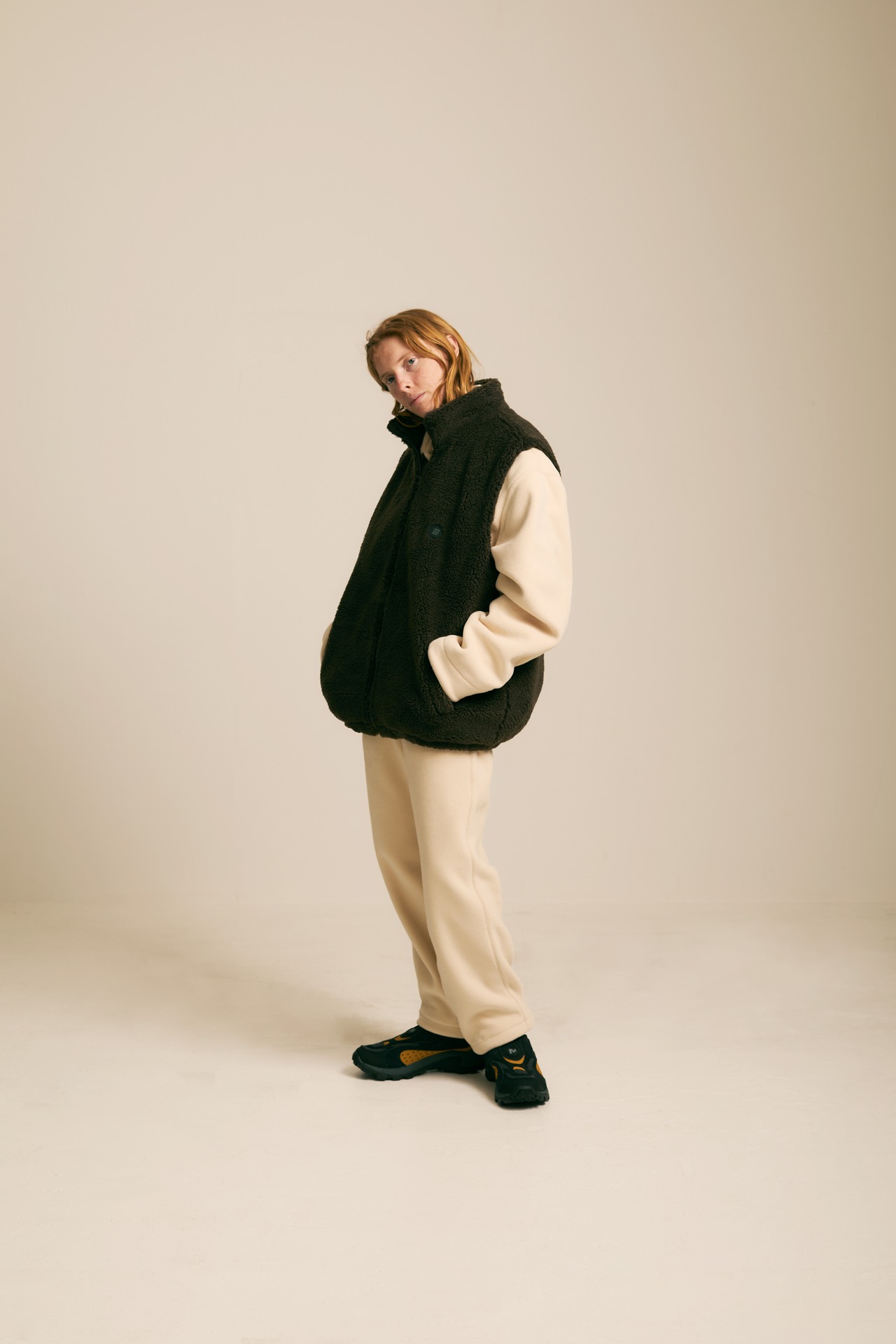 ボアフリースを使用したコーディネートのアクセントになる素材感のベスト。